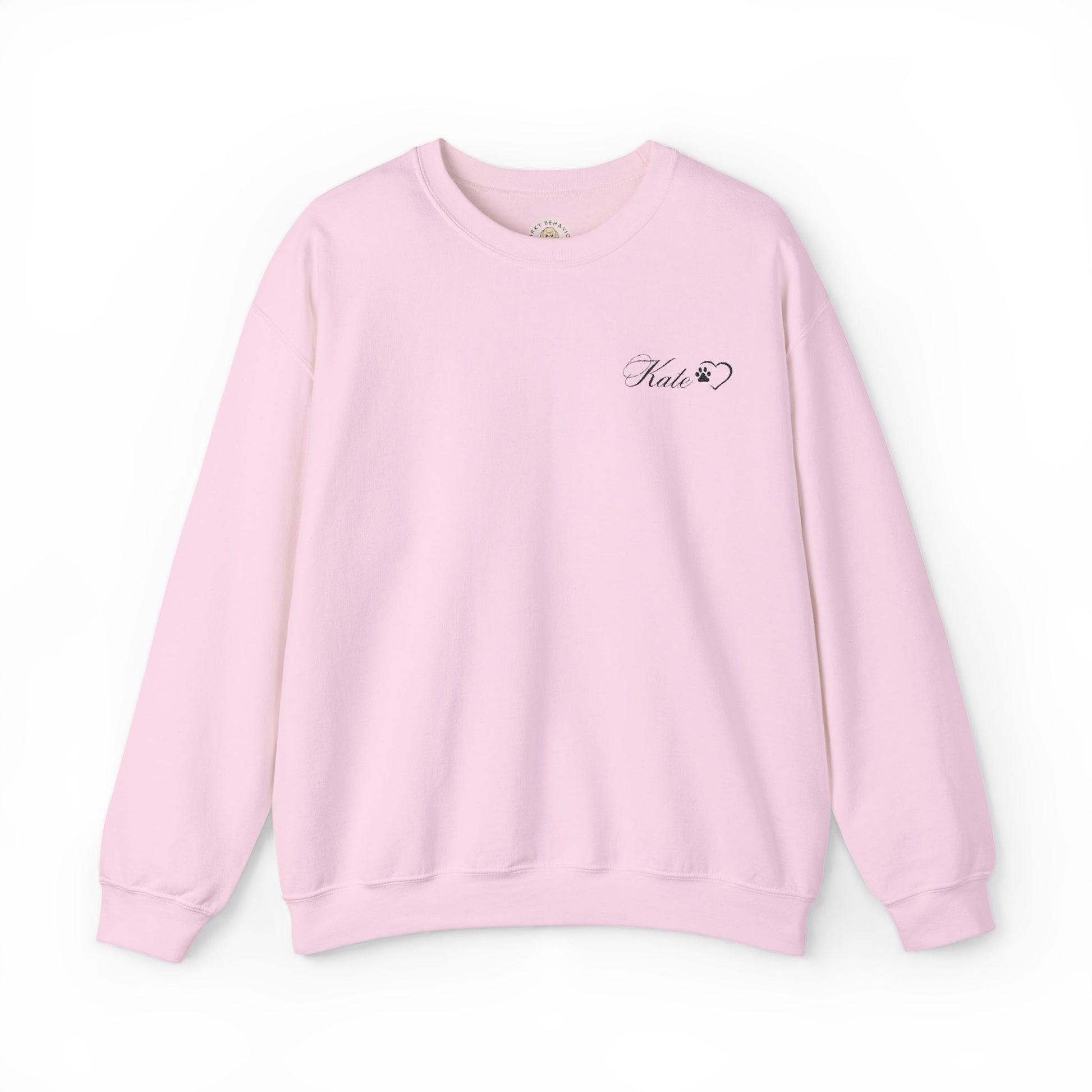 A custom embroidered crewneck sweatshirt with your name & a heart paw print next to it, offering a minimal, classic, clean, and girly vibe. This cozy medium-heavy fabric blend of 50% cotton and 50% polyester is perfect for colder months. The classic fit and crew neckline provide a comfy wearing experience with a clean-cut style. Ideal for dog lovers and those seeking a personalized touch to their wardrobe. Product features - Custom embroidered design with name & dog paw - Medium-heavy fabric blend for coziness - Classic fit with double-needle stitching for durability - Ethically grown US cotton and OEKO-TEX-certified dyes - Ribbed knit collar for shape retention Care instructions - Machine wash: cold (max 30C or 90F) - Non-chlorine: bleach as needed - Tumble dry: low heat - Do not iron - Do not dryclean